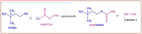 The current management of AD focuses on inhibiting cholinesterase, thereby improving the concentration of ACh in the synaptic cleft. One of the oldest and best understood neurotransmitters in the mammalian central nervous system (CNS) is ACh. It is localized in various parts of the CNS and is synthesized in and released from cholinergic neurons. Cholinergic neurons projecting from basal forebrain nuclei play a crucial role in cognitive processes such as learning and memory. Cholinergic neurons in the corpus-striatum are involved in motor functions. Choline O-acetyltransferase (ChAT) facilitates the synthesis of ACh from choline and acetyl CoA within presynaptic cholinergic neurons [17] (Scheme 1).