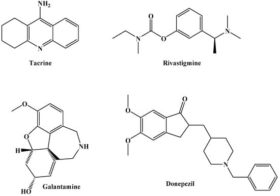 Currently, the drugs available on the market that employ a cholinergic approach for AD, aiming to increase neurotransmission at cholinergic synapses in the brain and improve cognition, include tacrine, donepezil, rivastigmine, and galantamine (Scheme 3). However, these drugs only provide symptomatic benefits and tend to lose therapeutic potential over time [37].