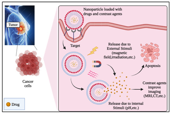 - Afzal, M.; Alharbi, K.S.; Alruwaili, N.K.; Al-Abassi, F.A.; Al-Malki, A.A.; Kazmi, I.; Kumar, V.; Kamal, M.A.; Nadeem, M.S.; Aslam, M.; et al. Nanomedicine in treatment of breast cancer—A challenge to conventional therapy. In Seminars in Cancer Biology; Academic Press: Cambridge, MA, USA, 2021; Volume 69, pp. 279–292. [Google Scholar] [CrossRef]
