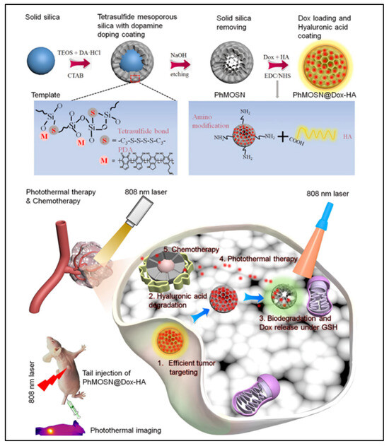 - Hu, L.; Ma, J.; Wei, X.; Li, Y.; Jiang, S.; Ji, X.; Zhu, F.; Tan, H.; Wang, P. Biodegradable polydopamine and tetrasulfide bond co-doped hollowed mesoporous silica nanospheres as GSH-triggered nanosystem for synergistic chemo-photothermal therapy of breast cancer. Mater. Des. 2022, 215, 110467. [Google Scholar] [CrossRef]