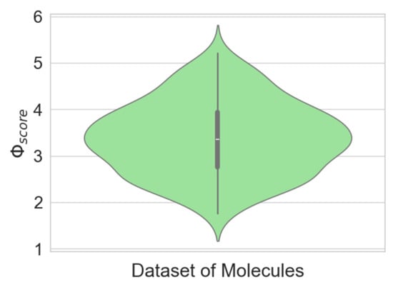 where reflects the frequency of the occurrence of molecular fragments in an extensive database of known compounds, and penalizes molecules with high structural complexity considering factors such as the number of rings, the number of stereogenic centers, and the presence of unusual structural characteristics. The complexity-based synthetic accessibility score approach helps to quickly assess the overall feasibility of synthesis of compounds in D, allowing the exclusion of molecules that are likely to be difficult to synthesize. The values of typically range from 1 to 10, with lower scores indicating easier synthesizability.