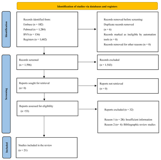 - Page, M.J.; McKenzie, J.E.; Bossuyt, P.M.; Boutron, I.; Hoffmann, T.C.; Mulrow, C.D.; Schamseer, L.; Tetzlaff, J.M.; Akl, E.A.; Brennan, S.E.; et al. The PRISMA 2020 statement: An updated guideline for reporting systematic reviews. BMJ 2021, 372, n71. [Google Scholar] [CrossRef]