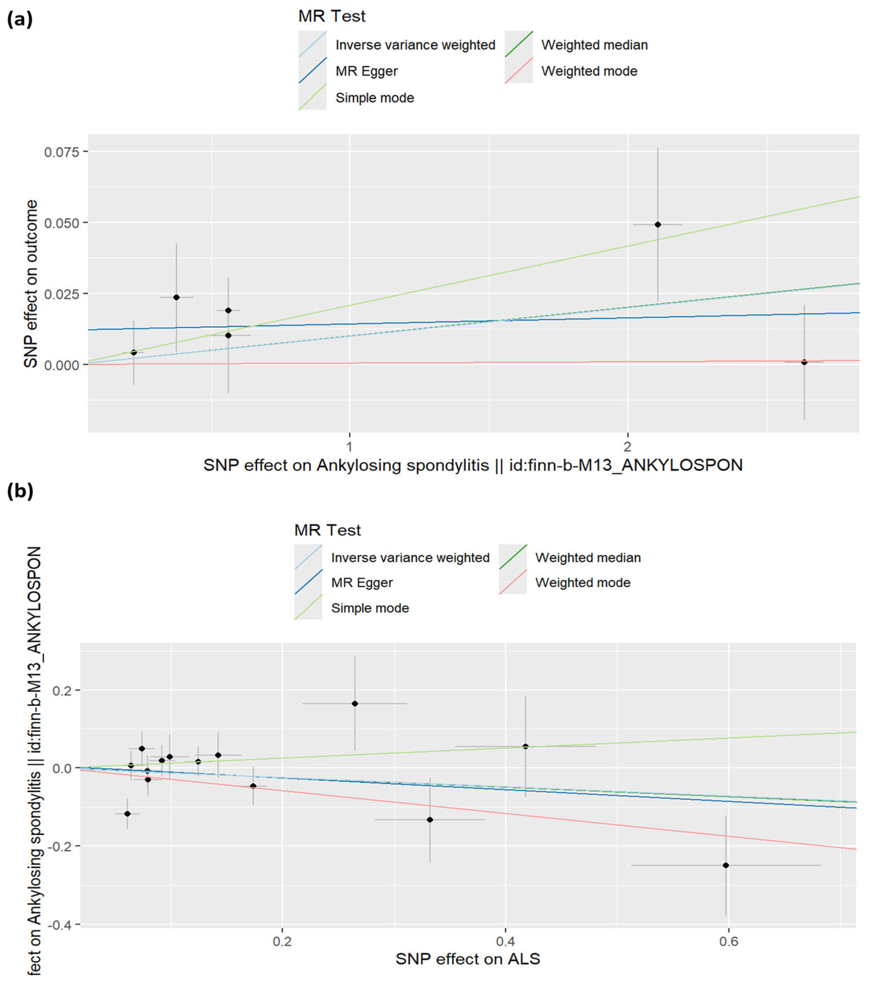 3.1.2. Causal Estimates of Effect of Genetic Susceptibility to Amyotrophic Lateral Sclerosis on Ankylosing Spondylitis Risk