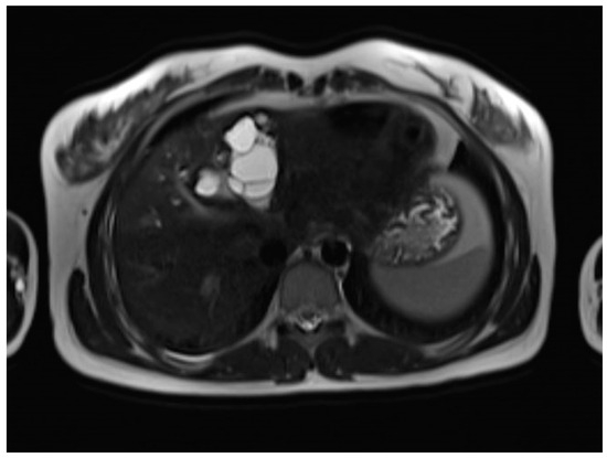 MRI scanning has a huge influence regarding the possibility of exacter measurements and gives a clearer indication of the activity of the disease, as seen in our case. The use of only albendazole is reserved for early stages where the cysts are smaller than 5 cm. In the later stages, as the cysts grow, the implementation of Puncture–Aspiration–Injection–Reapiration, modified catheterization technique, and surgery becomes necessary. In contrast, for inactive cysts (CE4 and CE5), the watch-and-wait approach is advised [2,14,16].