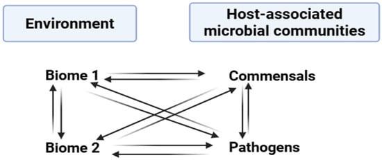 The viruses that infect and replicate specifically within bacterial cells are called phages or bacteriophages. They vary widely in size, morphology, and genomic structure, but all possess a DNA/RNA genome encapsulated in a phage-encoded protein coat called the capsid. Despite diverse appearances, phages are non-motile and rely on Brownian motion for movement [16]. While resistance against antibiotics by microbes is innate, the extensive utilization of antimicrobials has extensively led to this mechanism’s prevalence among disease-causing bacteria in animals and humans alike. Many pathogenic species related to human health harbor resistance genes within their chromosomes as an integral component. Various studies indicate that the mechanisms underlying antibiotic resistance observed in clinical settings closely mirror those found in environmental contexts. The extensive mingling of bacteria residing in the environment with bacteria arising from sources related to humans creates ecological conditions that lay the foundation for the advent of antibiotic-resistant strains [17,18]. ARGs can be obtained and disseminated among bacteria via mobile genetic elements, like conjugative plasmids, insertion sequences, integrons, transposons, and bacteriophages [19]. Our review underscores the notable function of bacteriophages in facilitating the transfer of resistance gene elements from environmental reservoirs to pathogens associated with human health, rendering antibiotics ineffective. To mitigate the health issues related to common people associated with antibiotic resistance, it is important to understand the sources and procedures behind the emergence of antimicrobial resistance.