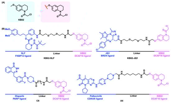 - Zhang, X.Y.; Crowley, V.M.; Wucherpfennig, T.G.; Dix, M.M.; Cravatt, B.F. Electrophilic PROTACs that degrade nuclear proteins by engaging DCAF16. Nat. Chem. Biol. 2019, 15, 737–746. [Google Scholar] [CrossRef] [PubMed]