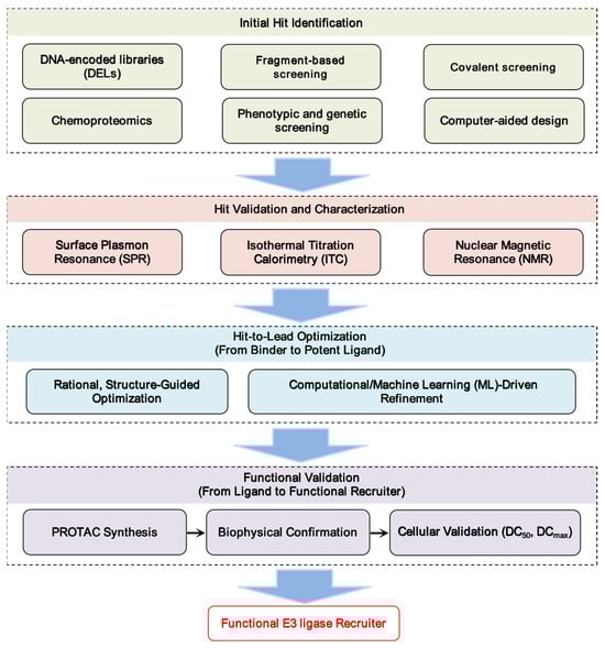 A schematic workflow for novel E3 ligase recruiter discovery and validation.