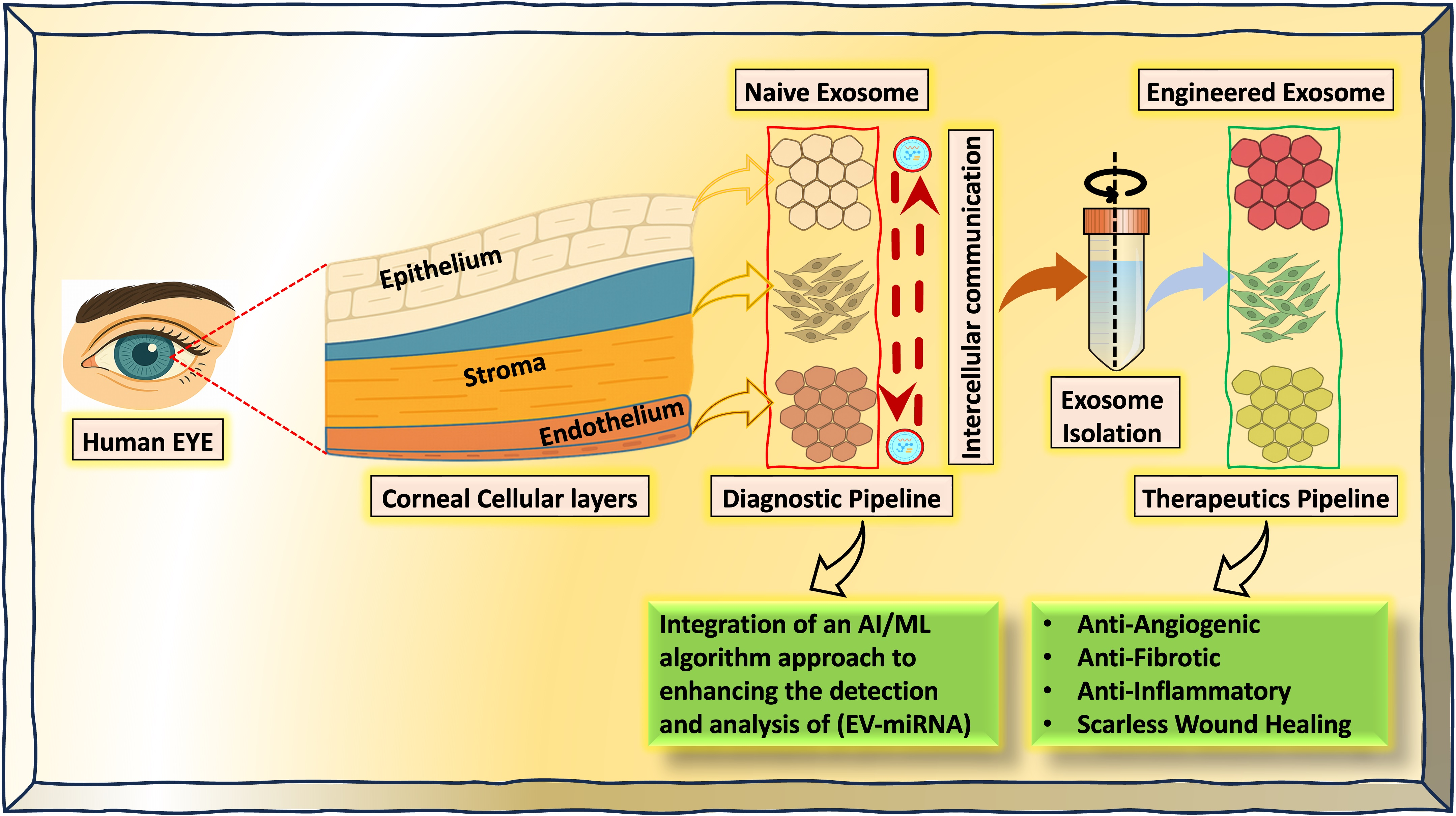 - Robbins, B.T.; Montreuil, K.A.; Kundu, N.; Kumar, P.; Agrahari, V. Corneal Treatment, Repair, and Regeneration: Exosomes at Rescue. Pharmaceutics 2024, 16, 1424. [Google Scholar] [CrossRef]