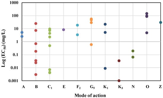 Huang, J.; Piao, X.; Zhou, Y.; Li, S. Toxicity Assessment of 36 Herbicides to Green Algae: Effects of Mode of Action and Chemical Family. Agrochemicals 2024, 3, 164-180. https://doi.org/10.3390/agrochemicals3020012