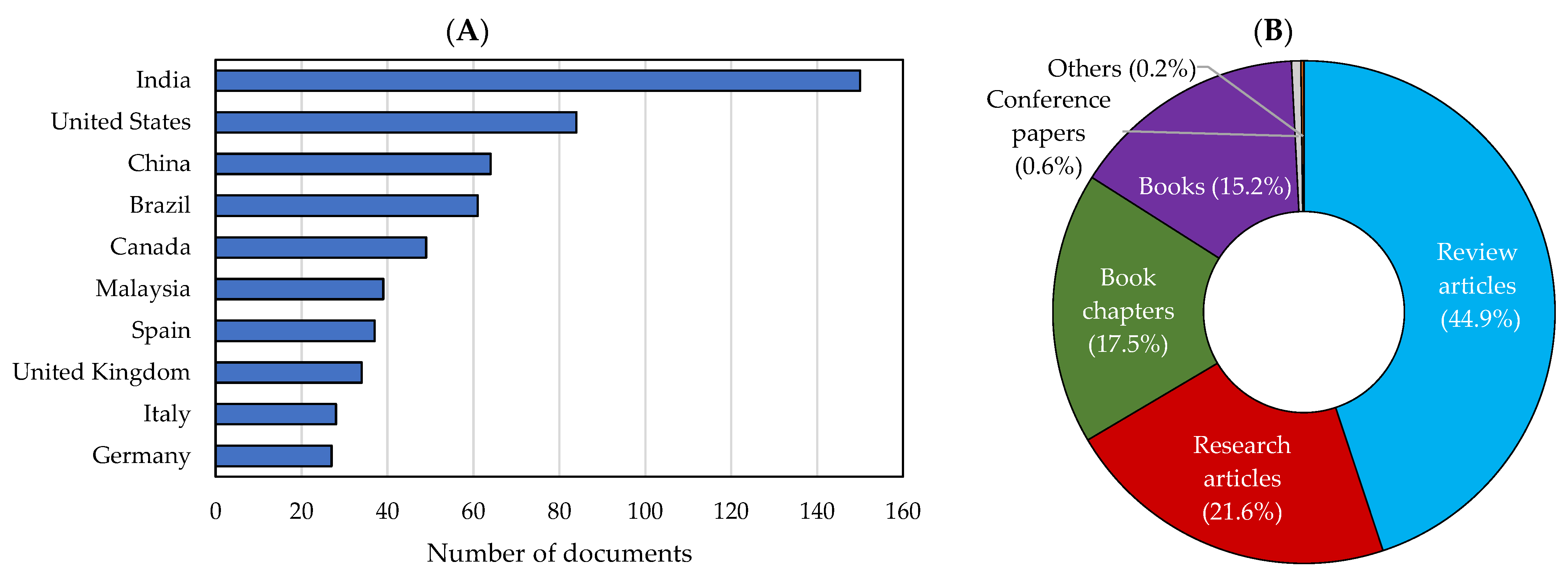 Figure 2A). The Web of Science database revealed that the authors with the highest number of publications in the field were affiliated with institutions in China, India, and Germany. After identifying materials consistent with the scope of this review, full-text reading was performed to assess their contribution to the development of this article.