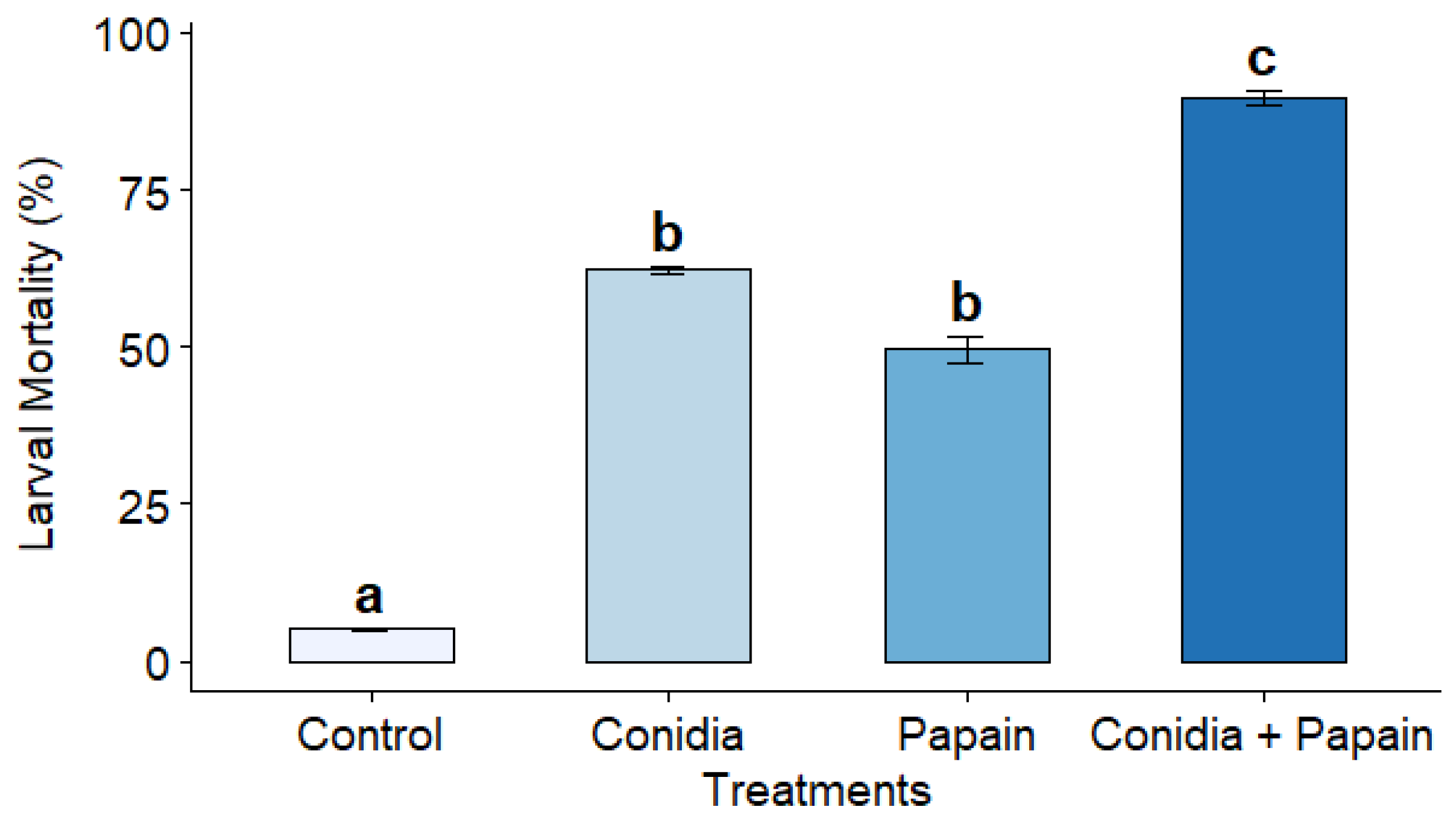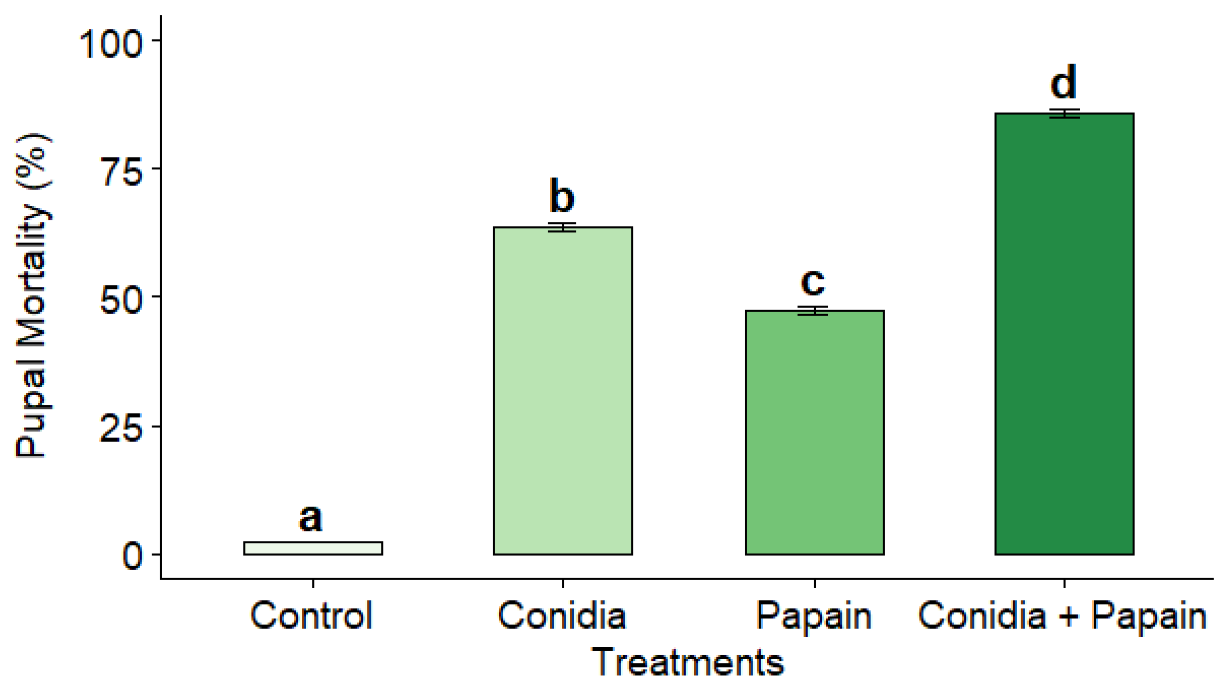 Chicago/Turabian StyleAlves, Amanda do Carmo, Ana Carolina Silva, Adriane Toledo da Silva, Nivia Kelly Lima Sales, Ruth Celestina Condori Mamani, Lisseth Bibiana Puentes Figueroa, Elias Honorato Gomes, Debora Castro Toledo de Souza, Rosangela Cristina Marucci, and Filippe Elias de Freitas Soares. 2026. "Compatibility Between Beauveria bassiana and Papain and Their Synergistic Potential in the Control of Tenebrio molitor (Coleoptera: Tenebrionidae)" Agrochemicals 5, no. 1: 2. https://doi.org/10.3390/agrochemicals5010002