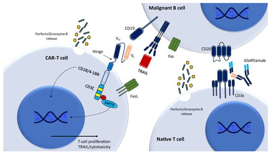 - Bacac, M.; Colombetti, S.; Herter, S.; Sam, J.; Perro, M.; Chen, S.; Umaña, P. CD20-TCB with Obinutuzumab Pretreatment as Next-Generation Treatment of Hematologic Malignancies. Clin. Cancer Res. 2018, 24, 4785–4797. [Google Scholar] [CrossRef] [PubMed]