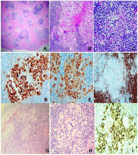 - Marafiot, T.; Hummel, M.; Anagnostopoulos, I.; Foss, H.D.; Falini, B.; Delsol, G.; Isaacson, P.G.; Pileri, S.; Stein, H. Origin of nodular lymphocyte-predominant Hodgkin’s disease from a clonal expansion of highly mutated germinal center B cells. N. Engl. J. Med. 1997, 33, 453–458. [Google Scholar] [CrossRef] [PubMed]
