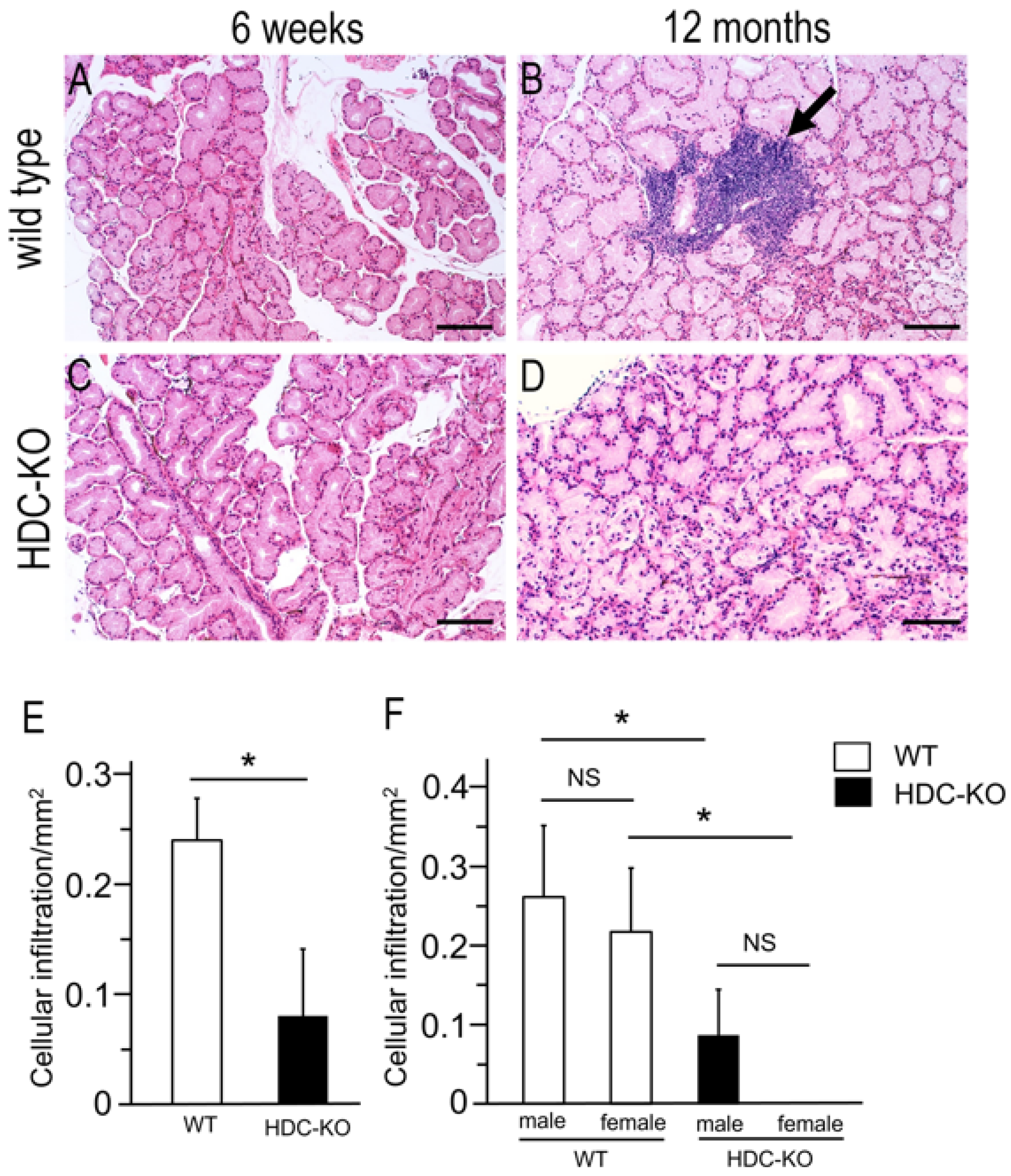 - Otsuka, H.; Nonaka, N.; Nakamura, M.; Soeta, S. Histamine deficiency inhibits lymphocyte infiltration in the submandibular gland of aged mice via increased anti-aging factor Klotho. J. Oral Biosci. 2023, 65, 243–252. [Google Scholar] [CrossRef] [PubMed]