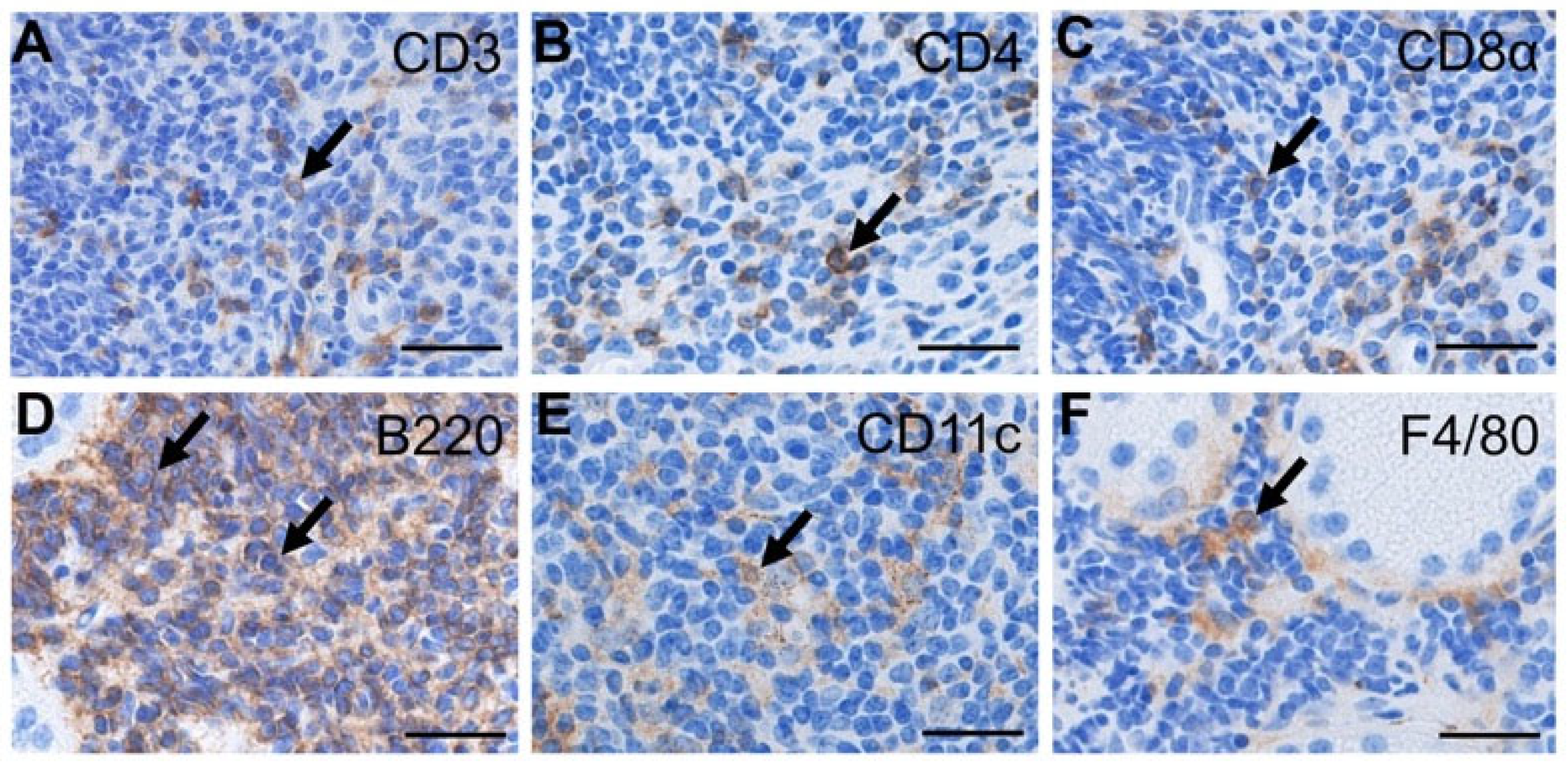 2.4. Identification of Infiltrating Cells in the Lacrimal Glands of Aged Wild-Type Mice