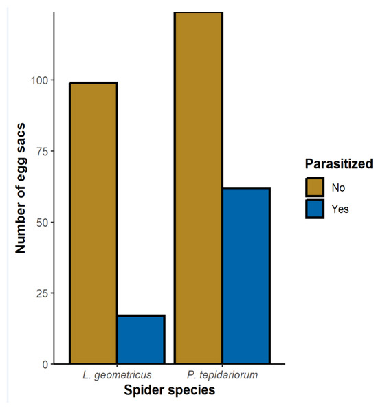 The number of parasitized and unparasitized egg sacs for Latrodectus geometricus and Parasteatoda tepidariorum.