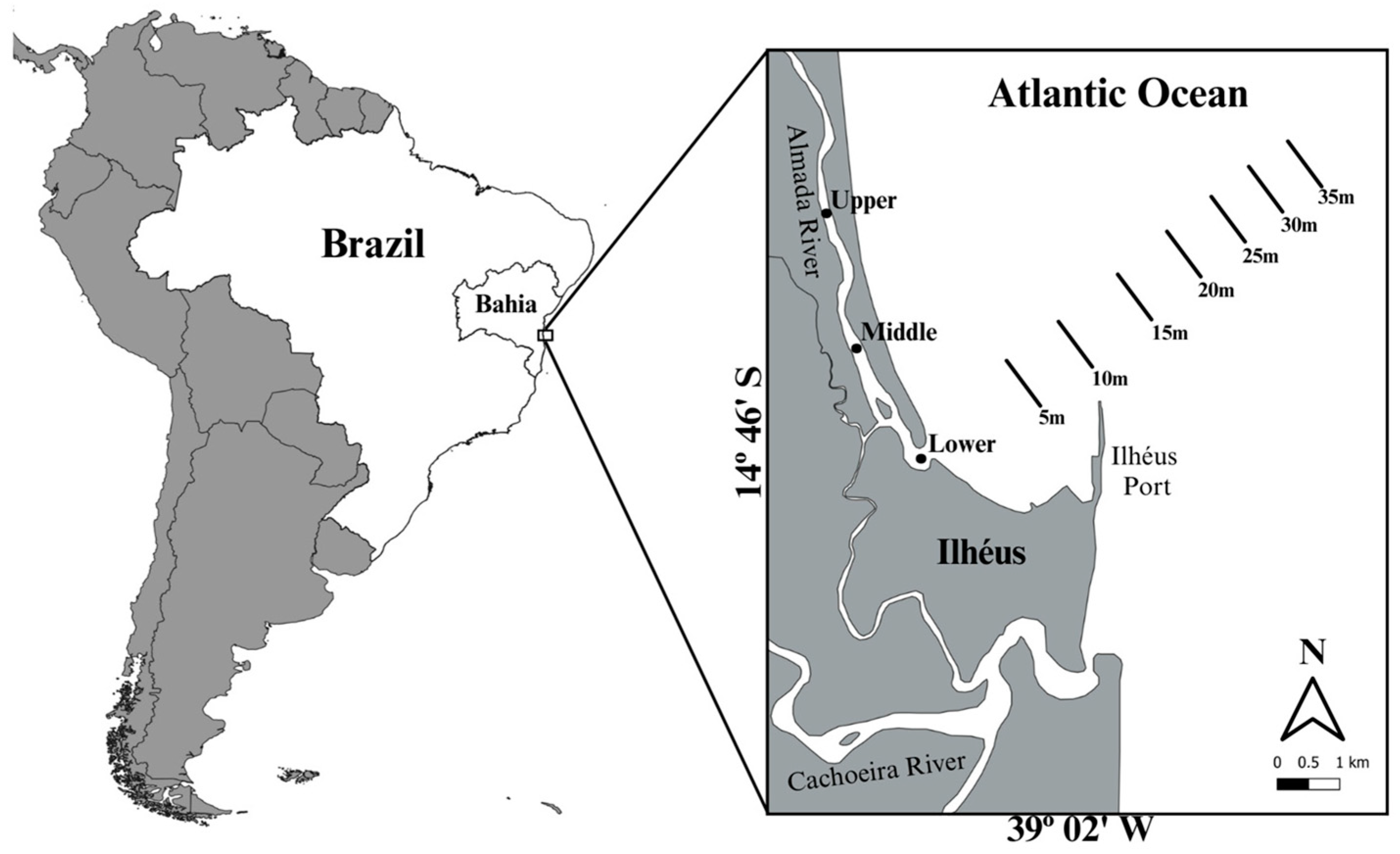 | Estuary | Upper | 14°43′40.1′′ S 39°03′591′′ W | 14°43′44.5′′ S 39°04′013′′ W |