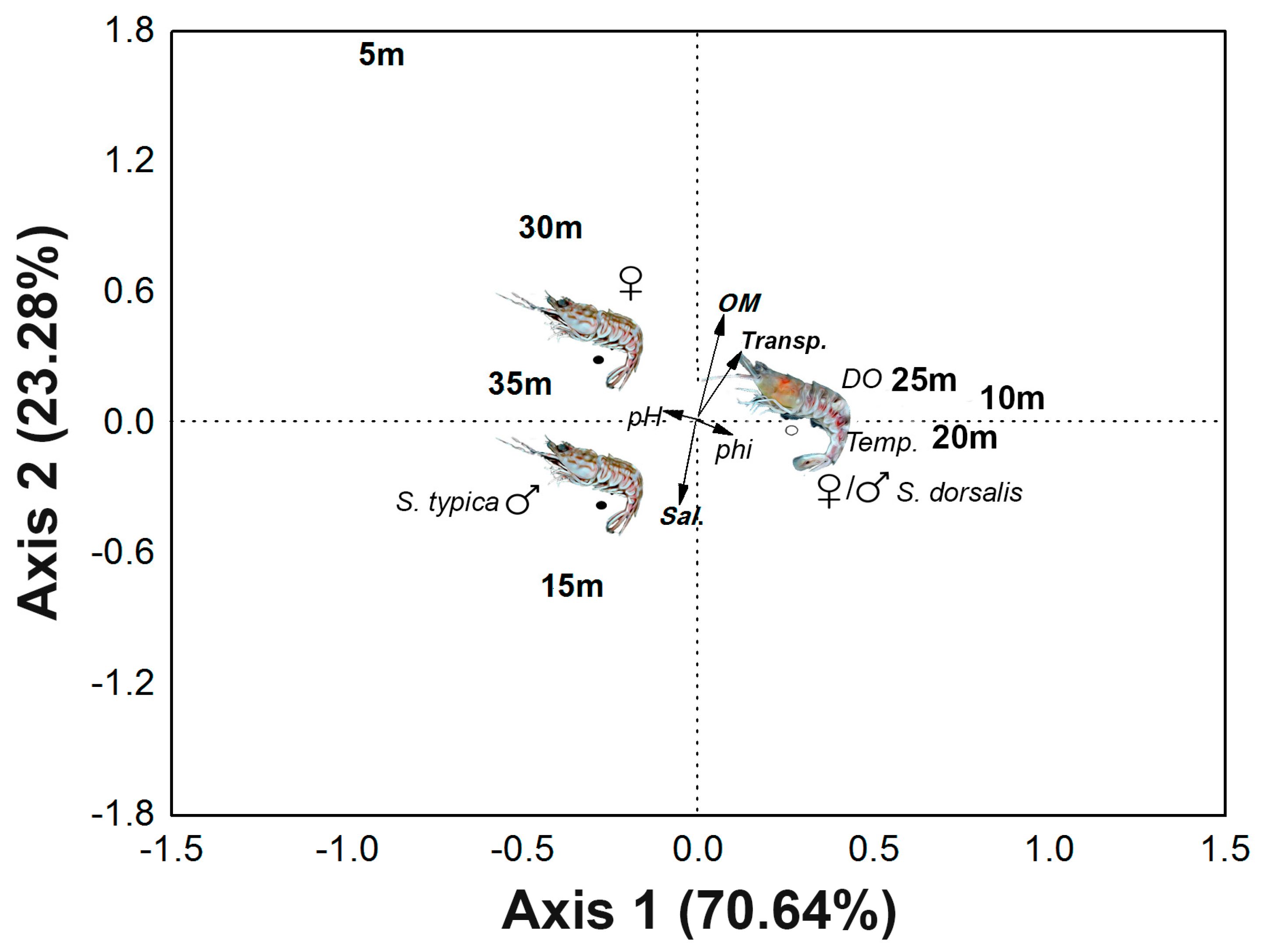 - Piantkoski, E.L.; Costa, R.C.; Davanso, T.M.; Herrera, D.R.; Simões, S.M. Which environmental factors are most relevant to the distribution of Sicyonia dorsalis (Penaeoidea: Sicyoniidae) in an upwelling region? Biologia 2021, 76, 1753–1762. [Google Scholar] [CrossRef]