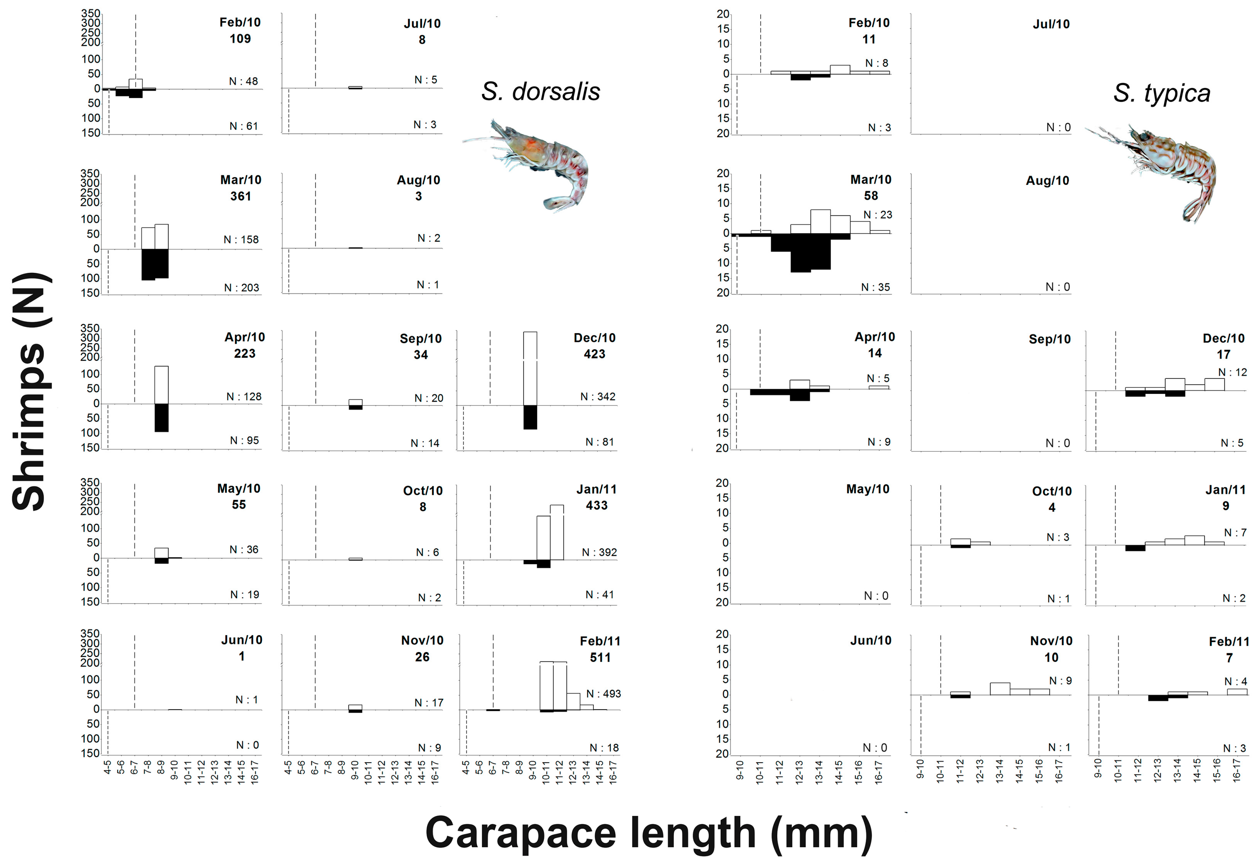 Spatio-Temporal Distribution and Population Dynamics of Two Sympatric Species: The Rock Shrimps Sicyonia dorsalis Kingsley, 1878 and Sicyonia typica (Boeck, 1864) (Penaeoidea: Sicyoniidae) on the Coast of Ilhéus, Bahia, Northeastern Brazil