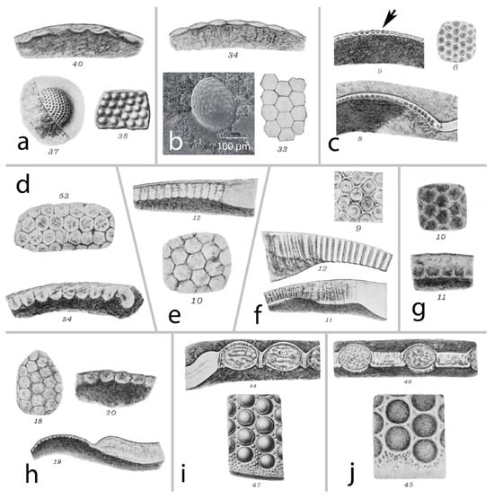 - Clarkson, E.N.K. Invertebrate Palaeontology and Evolution; John Wiley & Sons: Hoboken, NJ, USA, 1998. [Google Scholar]