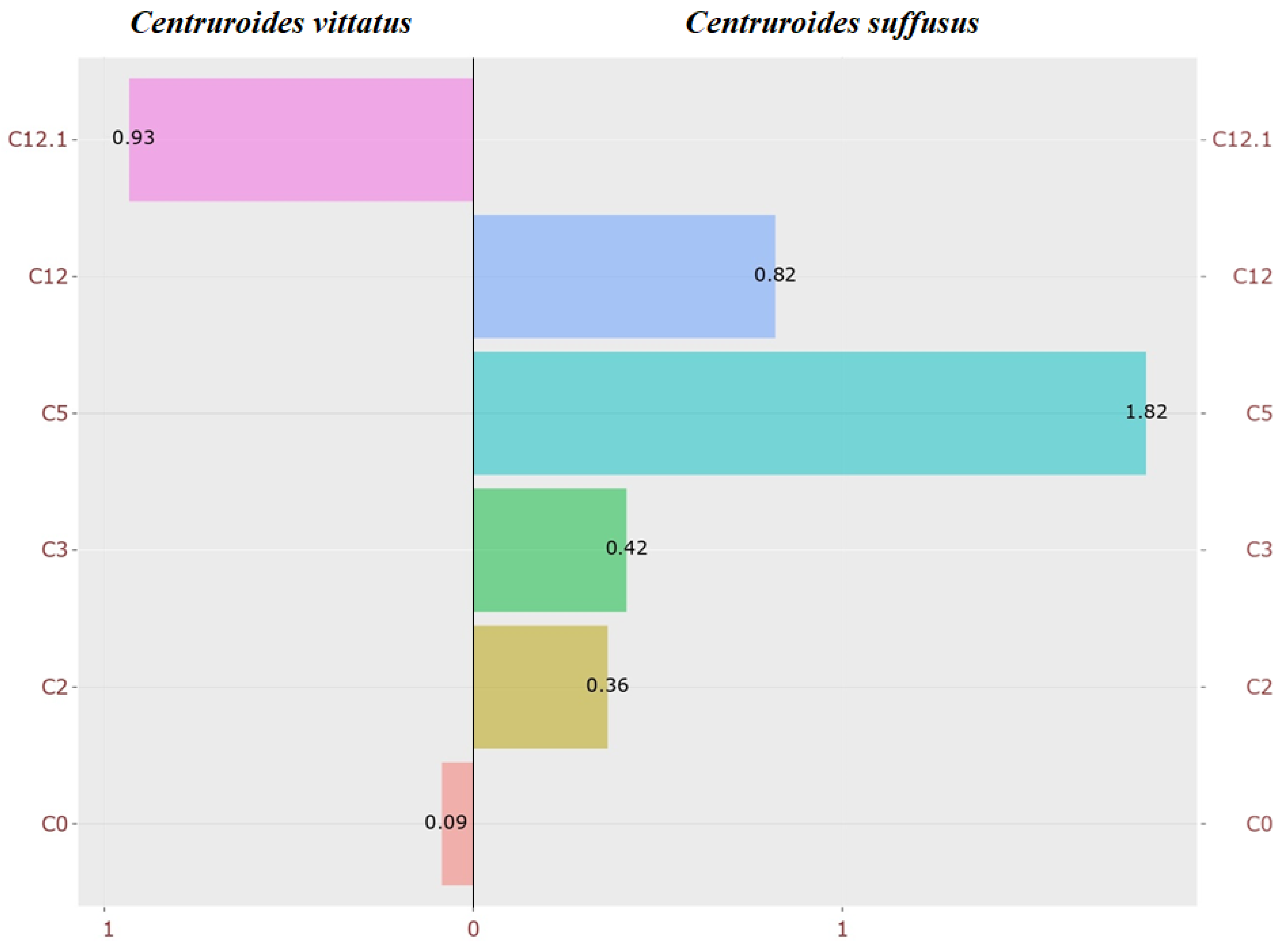 4.1.2. Differential Display from Acylcarnitines Between Centruroides