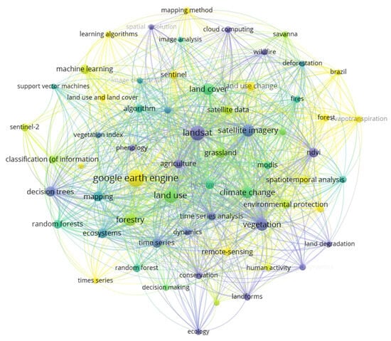 3.8. Authors’ Keywords and Co-Occurrence Network on Grasslands and GEE Research