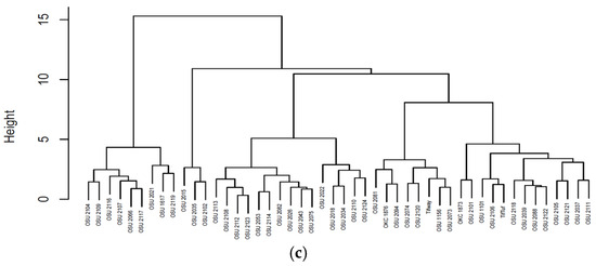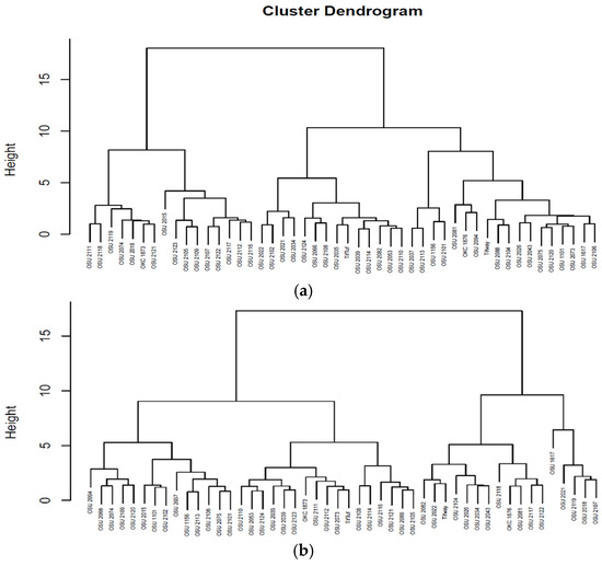 Data were subjected to statistical analyses of variance, and multivariate analyses such as cluster and correlation analyses using R v4.4.0 [39] and SAS statistical software v9.4 (SAS Institute Inc., Cary, NC, USA). R packages including ‘FactoMineR’ [40] and ‘cluster’ [41] were used in the multivariate analyses and visualization of results. Replications were designated as random, while the genotypes were fixed effects in the analysis.