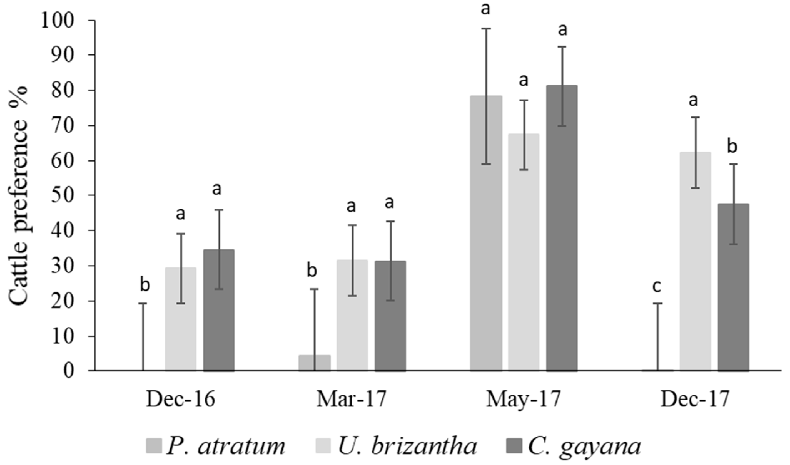 3.1. Forage Yield and Cattle Preference