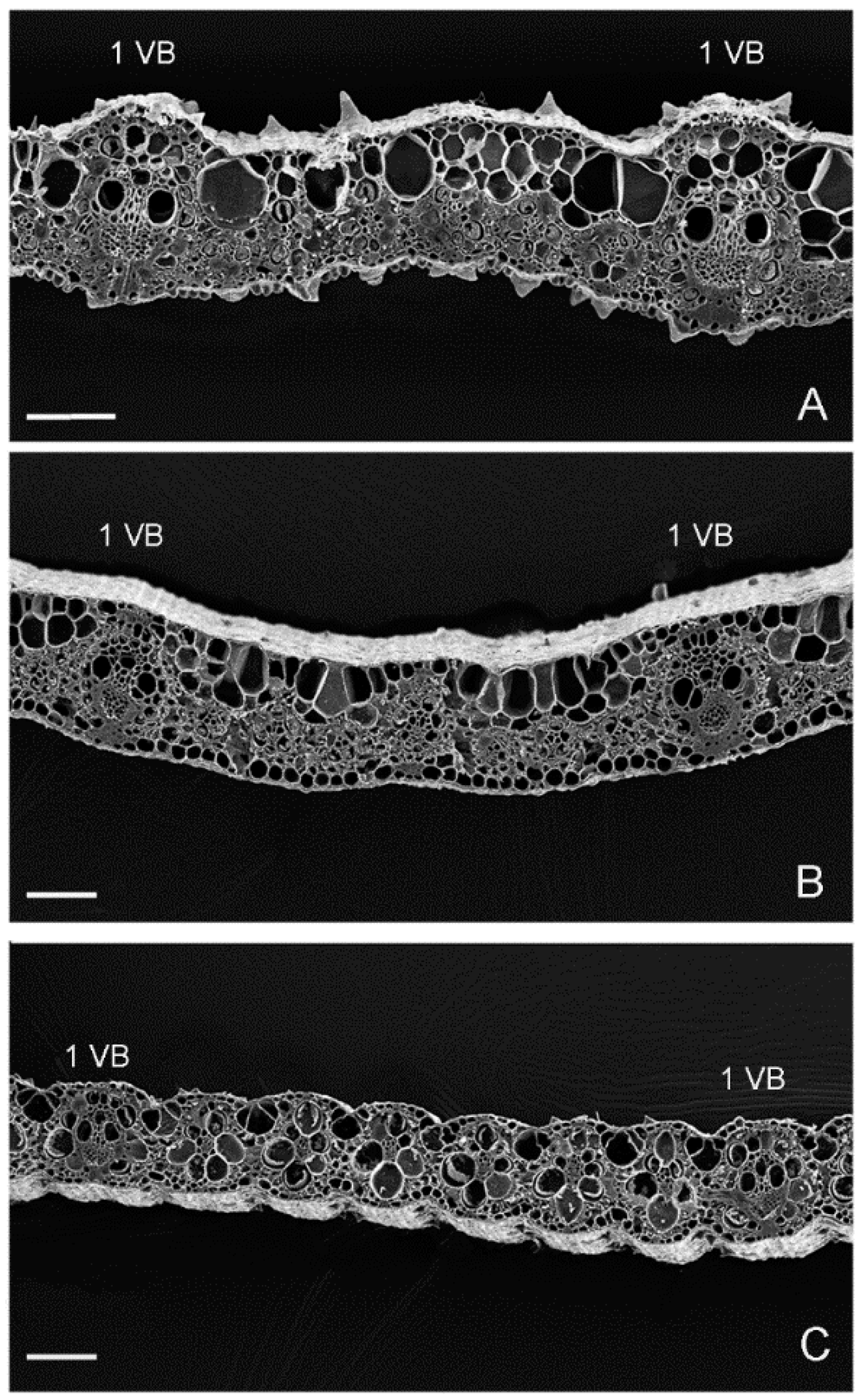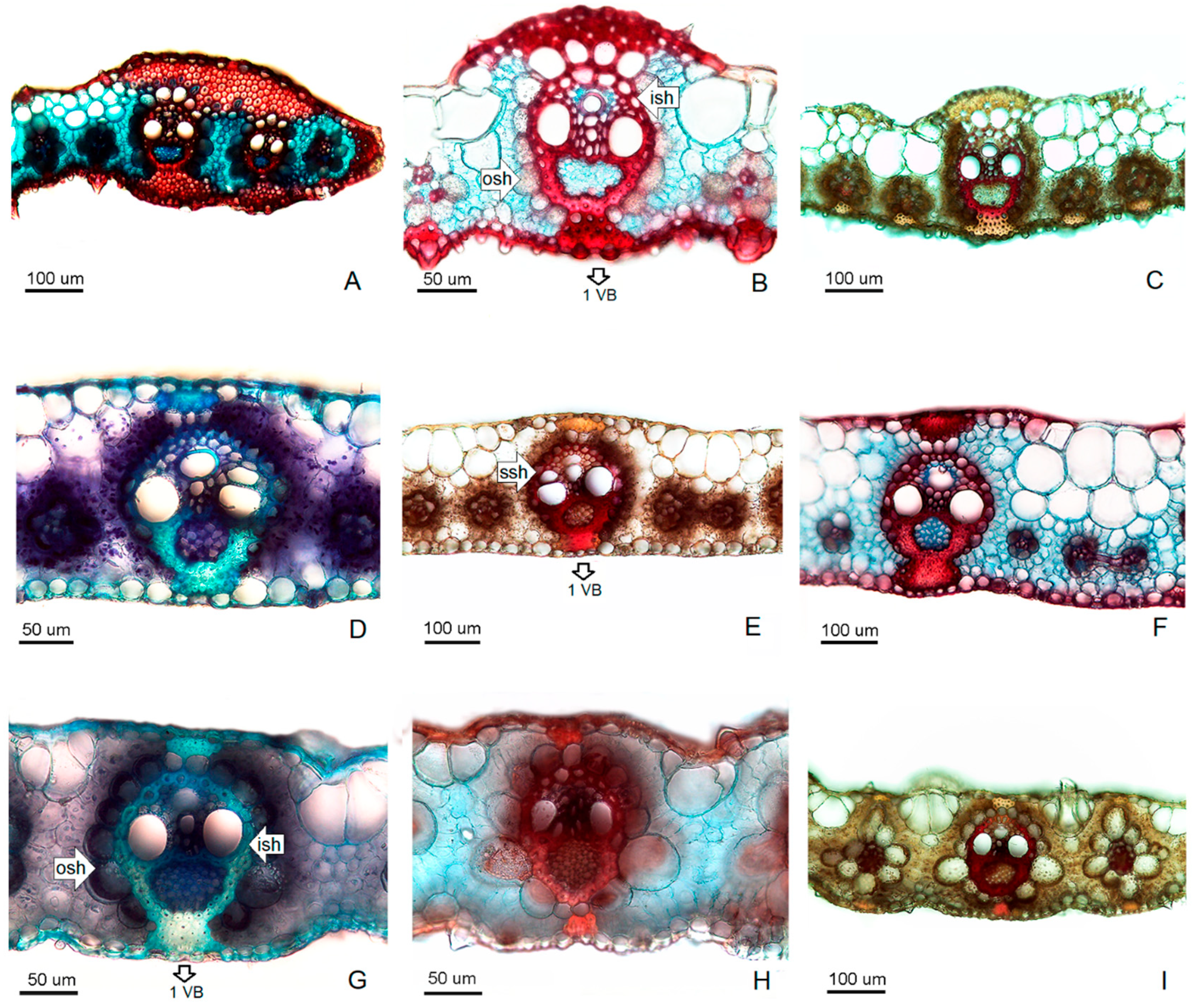 2.3. Morphological and Leaf Anatomy Evaluations
