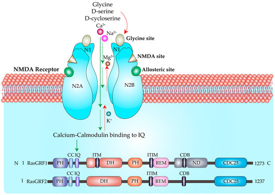 - Feig, L.A. Regulation of Neuronal Function by Ras-GRF Exchange Factors. Genes Cancer 2011, 2, 306–319. [Google Scholar] [CrossRef]