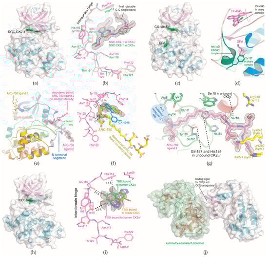 - Ikeda, A.; Tsuyuguchi, M.; Kitagawa, D.; Sawa, M.; Nakamura, S.; Nakanishi, I.; Kinoshita, T. Bivalent binding mode of an amino-pyrazole inhibitor indicates the potentials for CK2α1-selective inhibitors. Biochem. Biophys. Res. Commun. 2022, 630, 30–35. [Google Scholar] [CrossRef] [PubMed]
