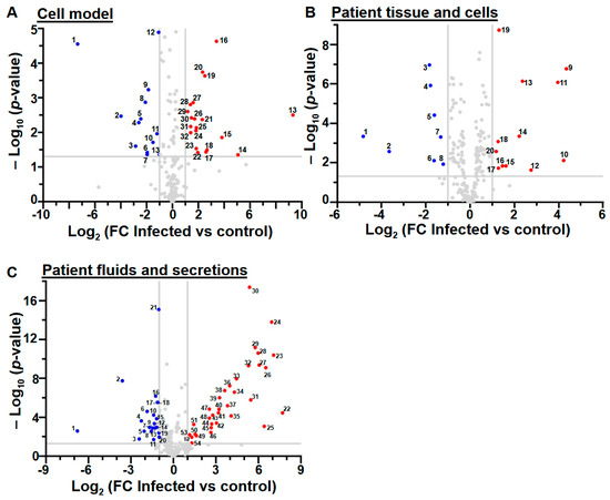 - Stukalov, A.; Girault, V.; Grass, V.; Karayel, O.; Bergant, V.; Urban, C.; Haas, D.A.; Huang, Y.; Oubraham, L.; Wang, A.; et al. Multilevel proteomics reveals host perturbations by SARS-CoV-2 and SARS-CoV. Nature 2021, 594, 246–252. [Google Scholar] [CrossRef] [PubMed]