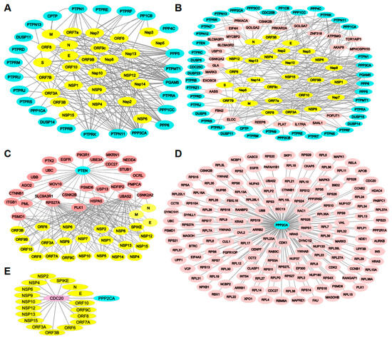 - Li, J.; Guo, M.; Tian, X.; Wang, X.; Yang, X.; Wu, P.; Liu, C.; Xiao, Z.; Qu, Y.; Yin, Y.; et al. Virus-Host Interactome and Proteomic Survey Reveal Potential Virulence Factors Influencing SARS-CoV-2 Pathogenesis. Med 2021, 2, 99–112.e7. [Google Scholar] [CrossRef] [PubMed]