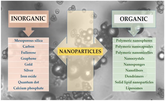 - Organic NPs, which encompass polymeric NPs such as nanospheres and nanocapsules, protein-based carriers, micelles, liposomes, solid lipid nanoparticles (SLNs), dendrimers, nanotubes, nanofibers, nanocrystals, and others.