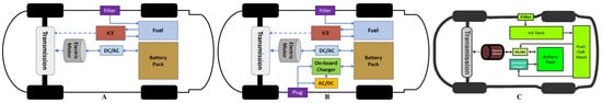 Layouts of the most common HEV, PHEV, and fuel cell configurations are presented in Figure 10 [].