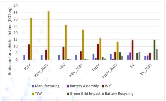 - Buberger, J.; Kersten, A.; Kuder, M.; Eckerle, R.; Weyh, T.; Thiringer, T. Total CO2-Equivalent Life-Cycle Emissions from Commercially Available Passenger Cars. Renew. Sustain. Energy Rev. 2022, 159, 112158. [Google Scholar] [CrossRef]