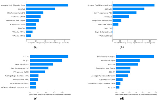 With the 320 biometric variables obtained from EEG and the other variables—such as ECG, GSR, , respiration rate, skin temperature, heart rate, average pupil diameter, and distance between the pupils—a total of 328 biometric variables were considered in this study.