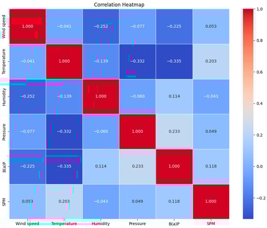The sources, transportation, transformation, and interactions of PAHs with atmospheric pollutants under various influencing conditions have been elucidated using different analytical methods [8,9]. Although conventional pollutant monitoring primarily relies on fixed stations and offline analyses, recent advancements in mobile sensing networks have enabled the dynamic tracking of pollutant variations. For instance, Lotrecchianoa et al. [10] developed a real-time on-road monitoring system that captures transient pollution events and provides high-resolution spatio-temporal data. This approach addresses the spatial coverage limitations of static stations and offers opportunities for integrating real-time streaming data with machine learning models. The correlation between atmospheric pollutants and meteorological conditions [11,12] has also been elucidated using statistical analysis, numerical simulation, and machine learning [13,14,15]. Meteorological factors, such as pressure, humidity, wind speed, and temperature, considerably influence variations in B(a)P concentrations. These factors affect the formation, dispersion, and deposition of suspended particulate matter (SPM), which in turn indirectly or directly affects B(a)P concentration.