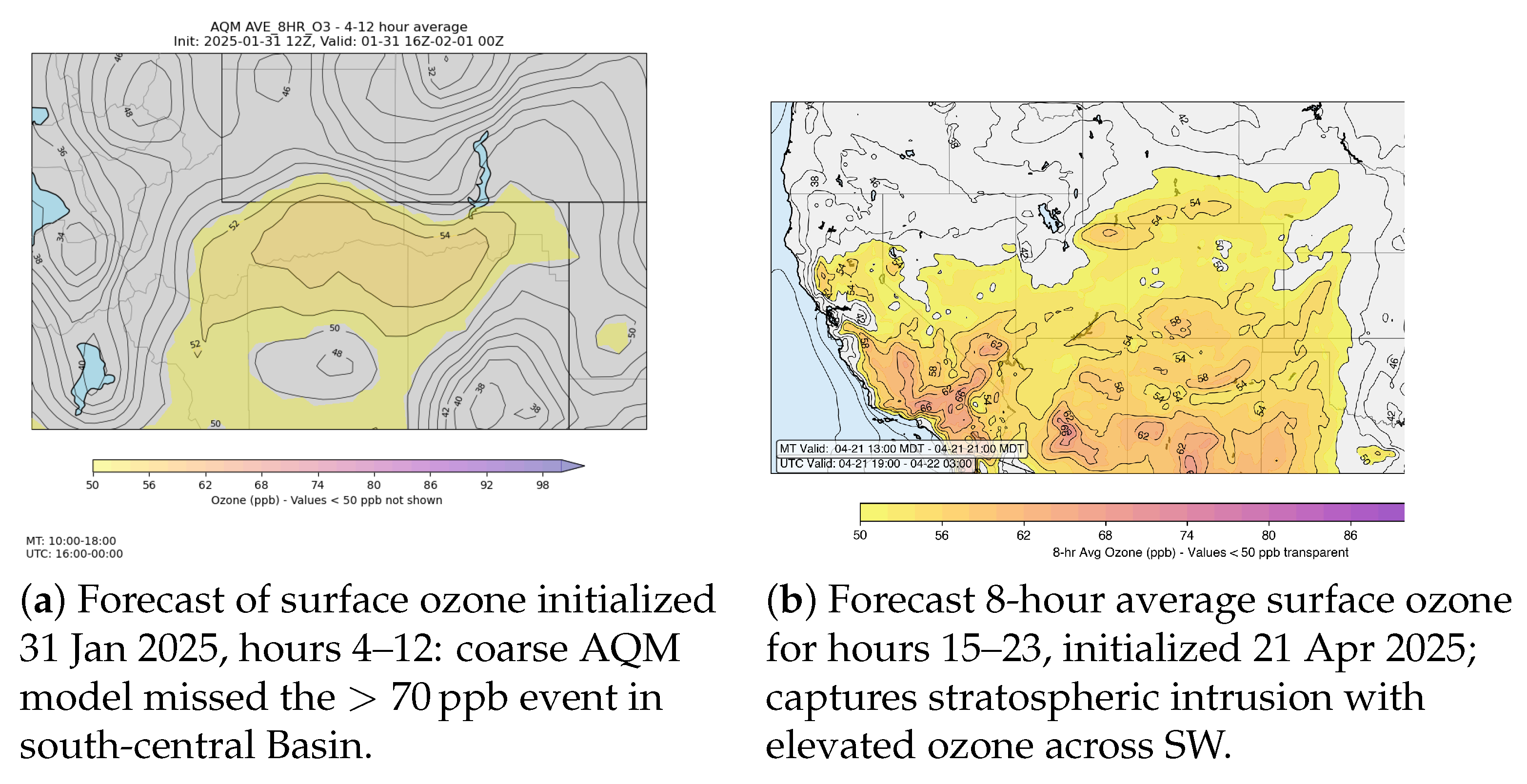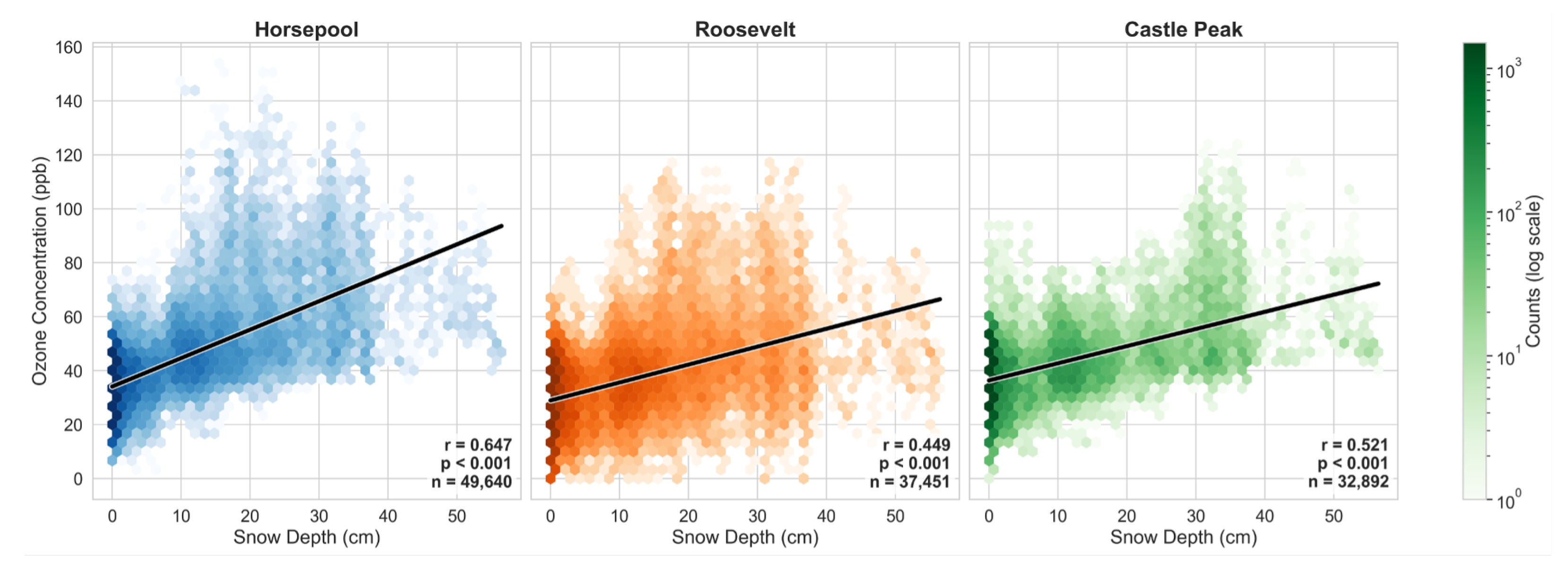 - Do we see an impact of spatial snowfall variations on ozone levels? A greater extent of snow coverage would provide conditions associated with an unhealthy buildup of ozone. If less snow falls in the western extent of the Basin, does this restrict ozone levels?;