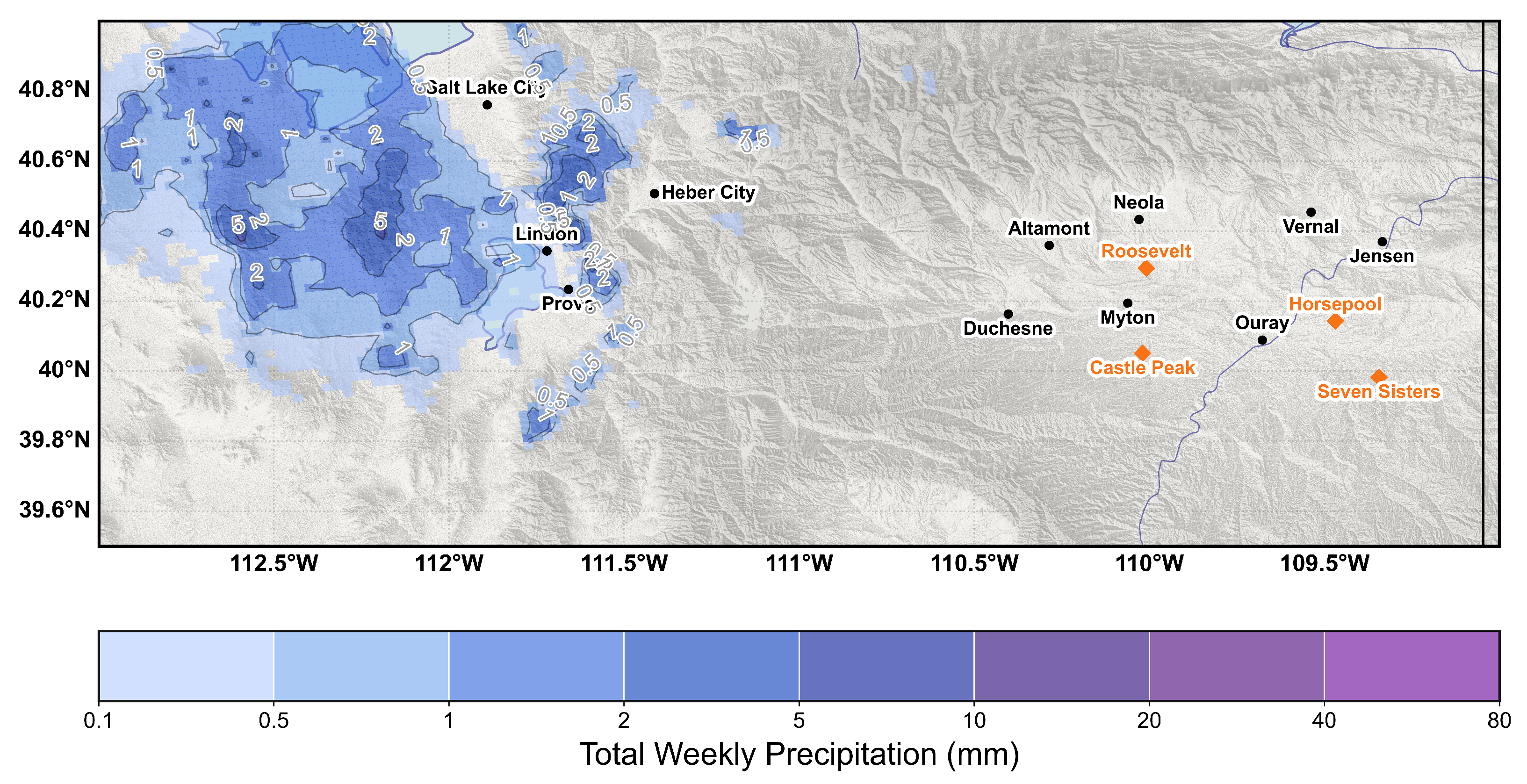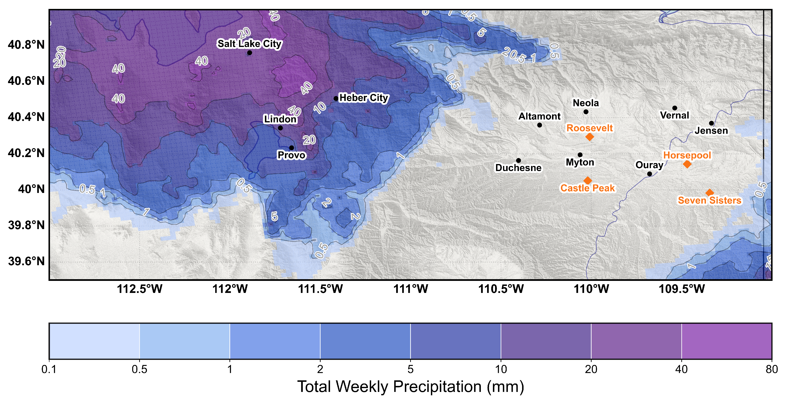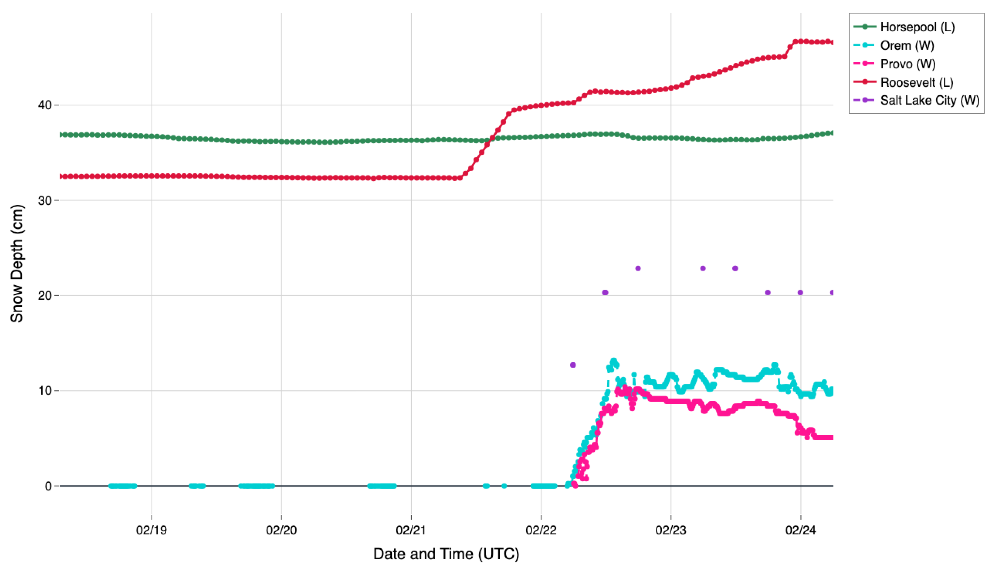- Do we find evidence of a Uinta Basin snow shadow? This would appear as less snow in the lee of the Wasatch than on the windward slopes, the challenge of a fair comparison in varying terrain notwithstanding;