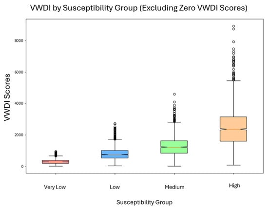 This distribution shows a hypothetical scenario where exposure levels are made equal across different groups. In real-world cases, residential and mobility patterns lead to much larger differences—for example, a 62% higher exposure for Hispanic communities compared to White communities in the Bronx [5], and more than twice the exposure for Black versus White communities within NYC’s 15 min walking networks [6]. Compared to this, our less than 0.5% difference in exposure indicates that susceptibility, rather than disparities in exposure, primarily explains the significant VWDI differences observed in this situation.