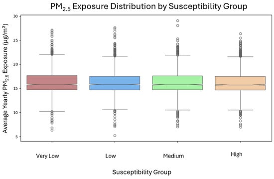 In contrast, our design intentionally neutralized these real-world factors. Exposure patterns across susceptibility groups varied by less than 0.5% (0.07 μg/m3), which is entirely within model uncertainty. However, the health burden differed significantly because of variations in susceptibility coefficients that reflect biological vulnerability, comorbidities, and access to care. These findings suggest that: