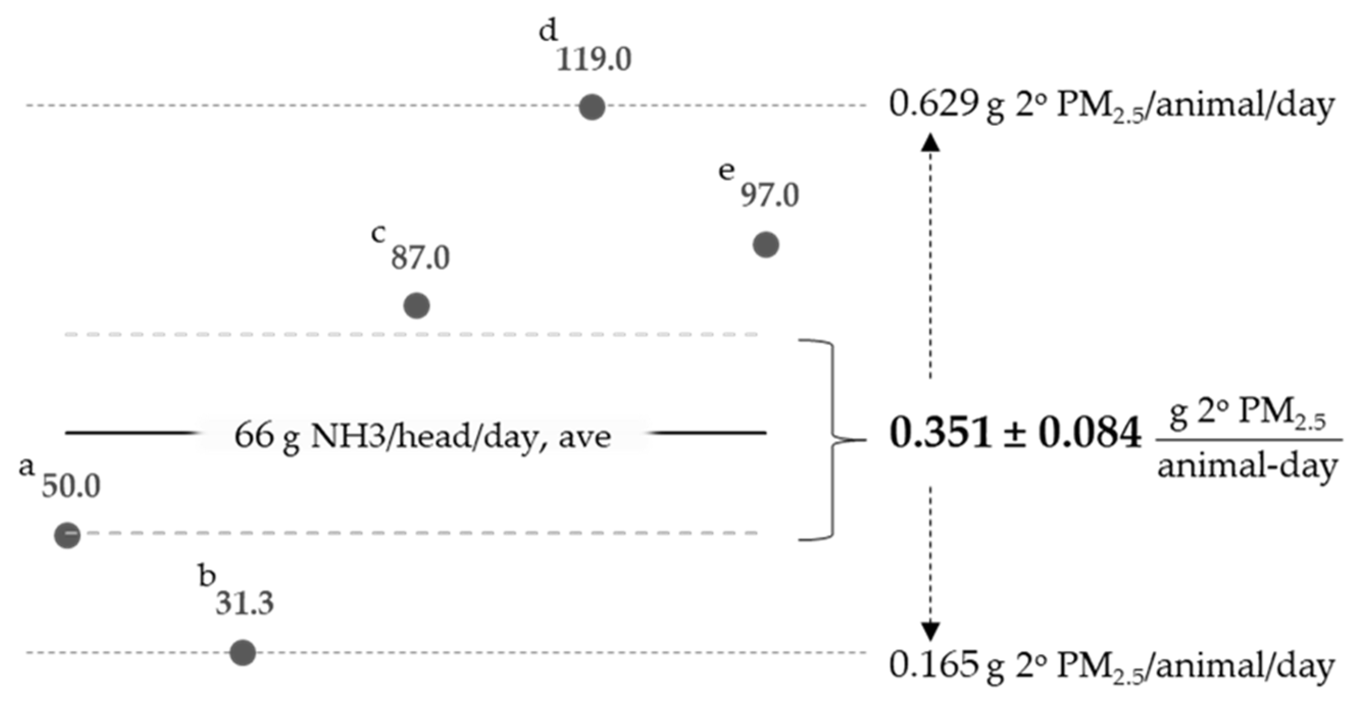 2.5 emission factors (EFs) from CAFOs can range from 0.53 kg/animal head/day (kg/hd/d) to 11 kg/hd/d, with PM