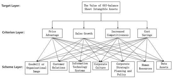 Stage 2: On the basis of the research framework of Fu et al. (2024) [], the analytic hierarchy process (AHP) is used to decompose the value of off-balance-sheet intangible assets. The specific implementation includes the following three key steps.