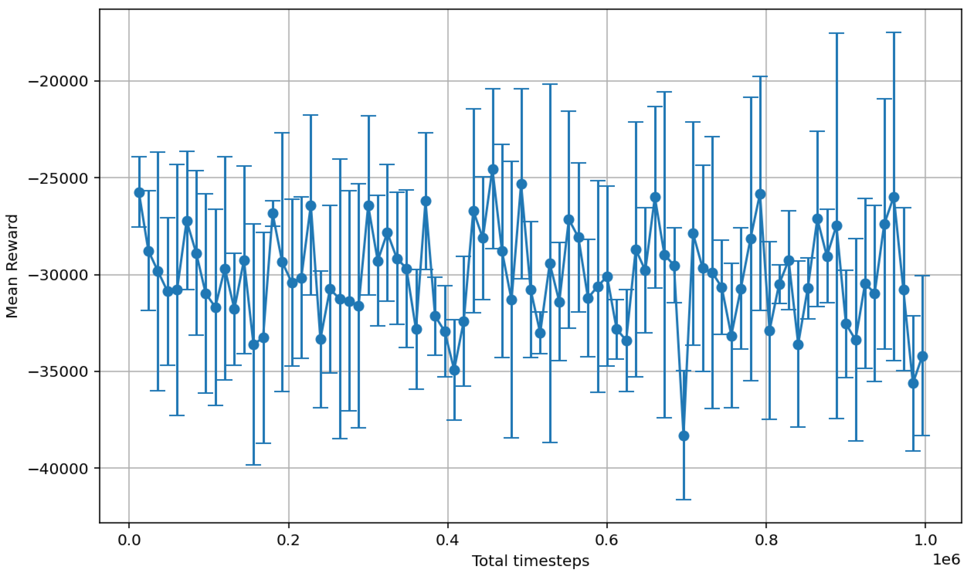 - learning curves: The evolution of mean and standard deviation of cumulative reward is monitored over training epochs on fixed-seed validation environments. These curves are automatically logged and visualized via TensorBoard and custom plotting utilities, enabling direct comparison across different settings and policies.