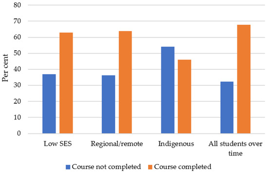 Non-completion and completion of university courses by equity group, 2005–2017 [57].