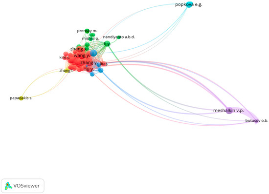 Figure 10 depicts the relationships between authors who are most frequently cited together in scientific publications in the field of modern digital and technological educational methods.
