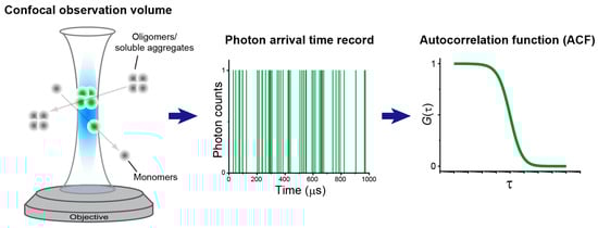 - Kitamura, A.; Kinjo, M. State-of-the-Art Fluorescence Fluctuation-Based Spectroscopic Techniques for the Study of Protein Aggregation. Int. J. Mol. Sci. 2018, 19, 964. [Google Scholar] [CrossRef] [PubMed]