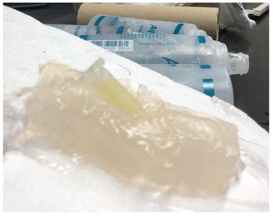 Urate suspension in Eppendorf on bed of ultrasound gel for imaging.