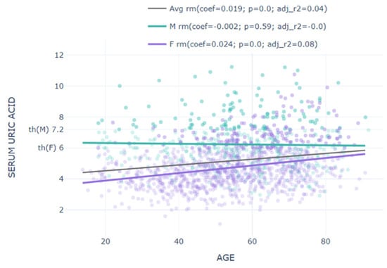 - Zitt, E.; Fischer, A.; Lhotta, K.; Concin, H.; Nagel, G. Sex– and age–specific variations, temporal trends and metabolic determinants of serum uric acid concentrations in a large population–based Austrian cohort. Sci. Rep. 2020, 10, 7578.